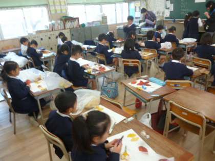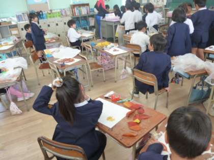 教室に帰ってきてから、落ち葉を使って、作品作りをしました。