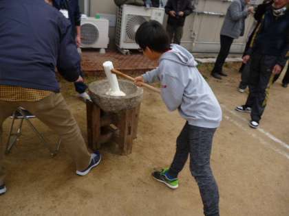 子どもたちもだんだんと、おもちをつくのが上手になってきました。楽しくもちつきをし、おいしくおもちをいただきました。地域やPTAのみなさんありがとうございました!