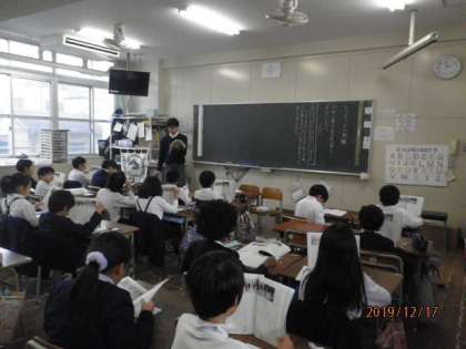 「もうどう犬の訓練」の学習をしています。姿勢よく、本読みができています。積極的に発表しています。