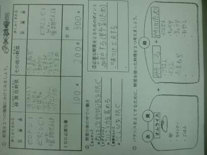 次に、野菜の働きと1日に必要な野菜をしっかり食べる工夫について考えました。