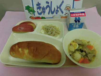 ☆八宝菜・もやしのごま酢あえ・りんご・おさつパン・牛乳