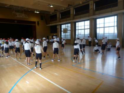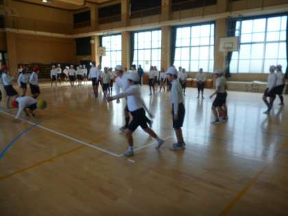 今日は1組対2組でドッジボールをしています。クラス対抗なので、盛り上がっています。