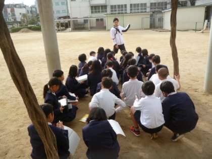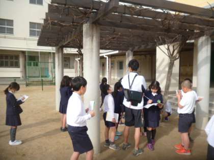 「冬の生き物を探そう」ということで、虫や植物を観察しています。