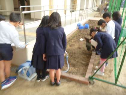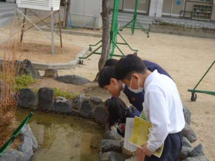 班ごとにタブレットで写真を撮っています。でも、冬はなかなか虫を見つけるのも難しい!