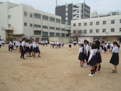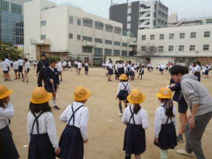 低学年のところでは、運動委員のお兄さん、お姉さんが縄をまわしてくれています。上手に回してくれると、跳びやすくて、記録も伸びます。