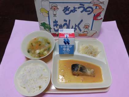 ☆さばのみそ煮・すまし汁・もやしのゆずの香あえ・ご飯・牛乳