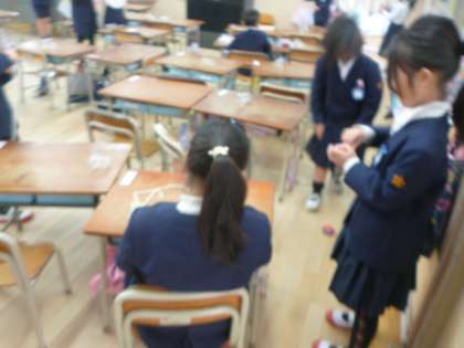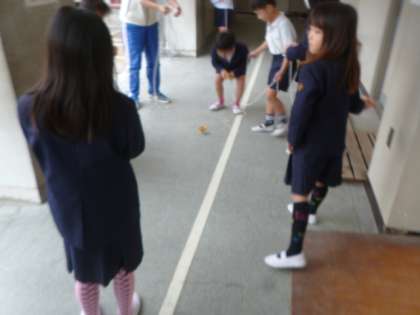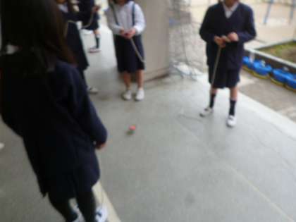 算数の時間に,こまをまわしてみます。ただ、ひもの巻き方が難しく、なかなか巻けません。そして、回すのも一苦労です。もう少し練習が必要です。回せるように練習していきましょうね。