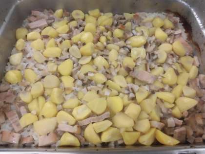 「中華おこわ」は、もち米に焼き豚、くり、しいたけ、調味液を加えて蒸し焼きにします。チキンブイヨンとごま油で コクと旨みを出しています。