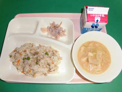 ☆鶏ごぼうご飯・みそ汁・焼きれんこん・牛乳