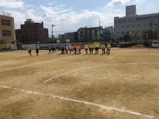 風が少し冷たいですが日は暖かく身体を動かしやすい天気。今日も6年生は元気にハンドボールです!