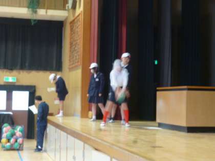 今日は運動場の状態が悪く、体育館での活動になりました。