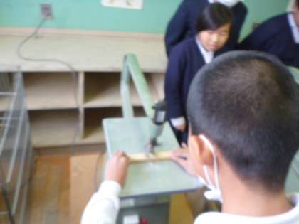 実際に自分たちでも糸のこぎりを使ってみました。よく切れてびっくり!!自分たちの作品の完成が楽しみです。