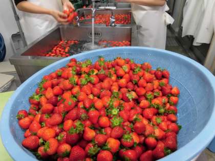 「いちご」は長崎県産の「さちのか」です。色がとってもきれいでしたょ。