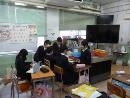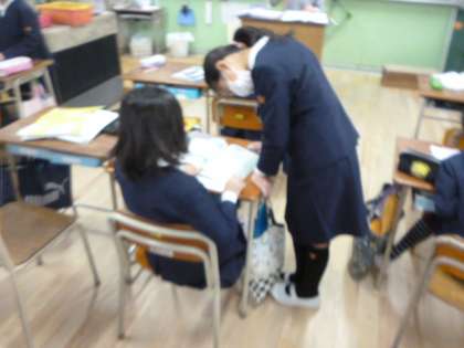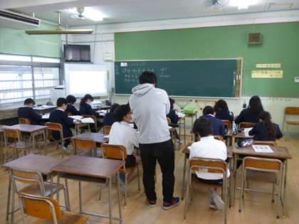 クラスを二つに分けて、分数の足し算や引き算、数直線を学習しています。自分たちで、教えあう姿も見られます。