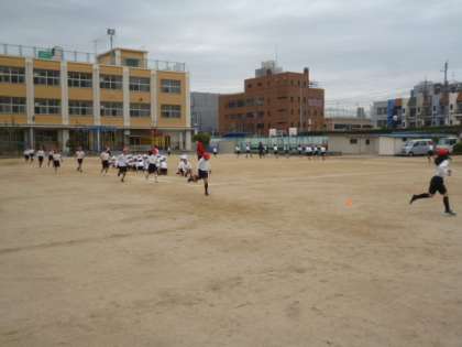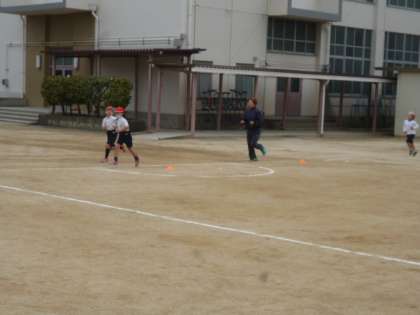 今日も持久走をがんばっています。3分間で走る距離がだんだんと伸びてきました。ペアの記録係からの応援の声も素敵です。がんばれ!