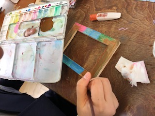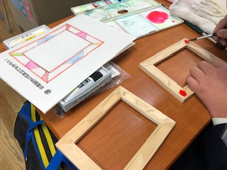 卒業制作の写真立ても順調に進んでいます。丁寧に彫刻した後は色塗りをしています。