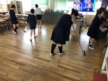 昼休みが終わると、掃除の時間。早い子はチャイムが鳴る前から掃除を始めています。さすがは6年生。普段から5分前行動を意識できています。