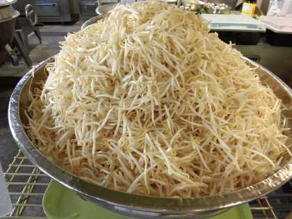 「もやしとにんじんの甘酢あえ」は、ゆでたもやしとにんじんに、砂糖、塩、米酢、こいくちしょうゆを合わせたタレをかけ、あえます。子どもたちは意外にも、これが大好きでした。