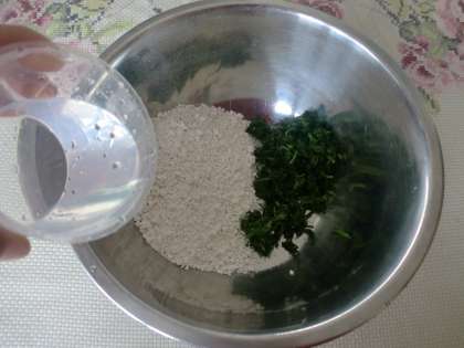 これを細かくきざんで、白玉粉(もち米の粉)と、分量の水をまぜてよくこね、団子にしていきます。