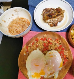 パプリカの色(いろ)が鮮(あざ)やかですね!全部(ぜんぶ)ひとりで作(つく)ったそうです。本当(ほんとう)にお料理上手(りょうりじょうず)ですね。