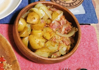 ・ガパオライス・ブラジリアンハーブチキン・ジャーマンポテト・もやしの辛味(からみ)あえ です。