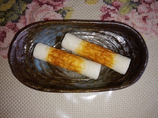 むかしは竹(たけ)のぼうに魚(さかな)のすりみをまきつけてやいたのでこの名前(なまえ)があります。