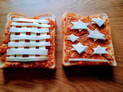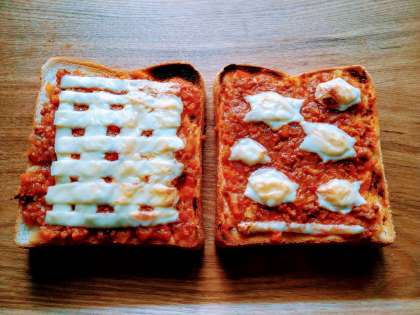 チーズはいつもなら、一枚(いちまい)ペロ〜ンとのせまずが、普段(ふだん)とちがう工夫(くふう)をしてみようと思(おも)い、チャレンジしてみました! 結果(けっか)は、思(おも)ったようにはいきませんでしたが、また、練習(れんしゅう)してみようと思(おも)います。
