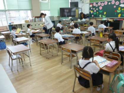 1年生は入学オリエンテーションのあと、初めての登校日になりました。学級での活動は短かったですが、学校にどんどん慣れていってね。今日は、昨日の雨で運動場が使えませんでしたが、次は晴れるといいね。運動場では、できることが限られているので、なわとびを持ってきてね。