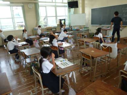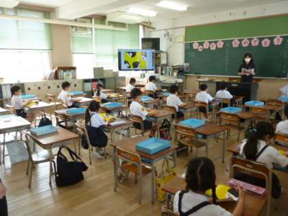 今日も2つに分かれての授業です。いろいろな教科の授業が始まりました。
