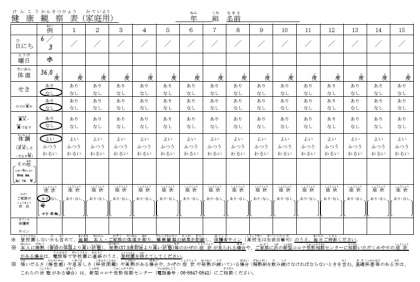 ◎「健康観察表」に体温など必要事項を記入し、登校日にお子さまに持たせてください。