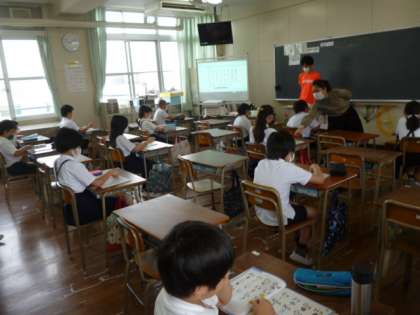 5年生は英語、C-NETの先生と一緒に「どのように伝えるか」を