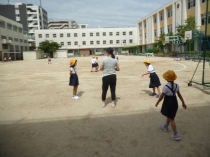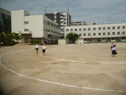 今日は昨日よりもすこし暑さがやわらいでいるので、多くの児童が運動場で遊んでいます。