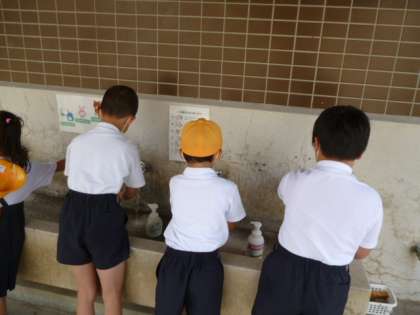 水やりもこまめにしてくれています。休み時間ごとにしっかり手洗いもしています。えらい。
