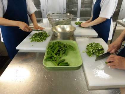 オクラの花は、まるで黄色いハイビスカスのように大きくて美しいです。苦手な子どももいますが、頑張って食べていました。