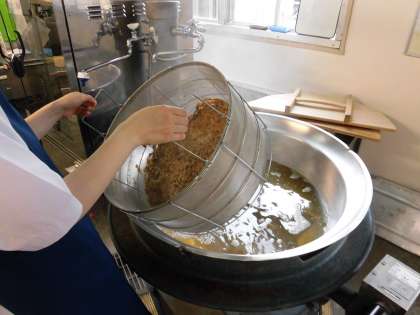 「みそ汁」は 、じゃがいも、たまねぎ、にんじん、青みにオクラを使用しています。