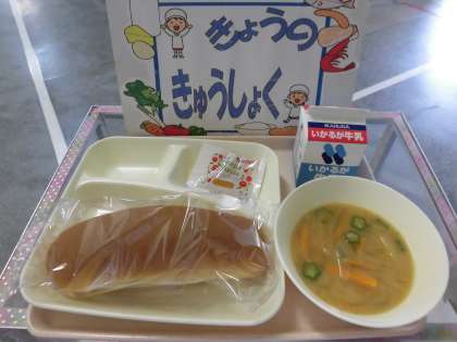 今日は1年生前半の17人中11人がみそ汁のお替りに手を挙げていました。「みそしる、おいしい!」と言って食べていましたよ。