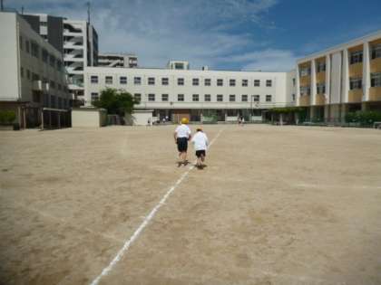 天気が良い日は運動場に出て遊ぶ人が増えています。密集にならないように気をつけましょう。