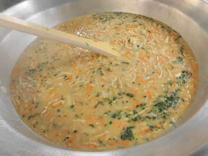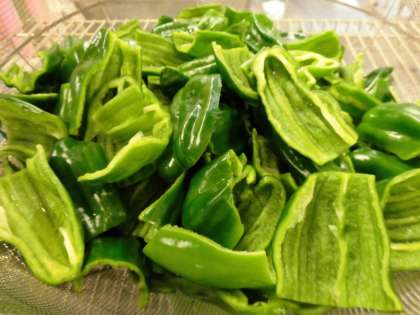 「野菜いため」はツナと キャベツ、ピーマンを綿実油でいため、塩、こしょう、うすくちしょうゆで味つけします。