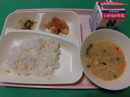★鶏肉のおろしじょうゆかけ・みそ汁・野菜いため・ご飯・牛乳