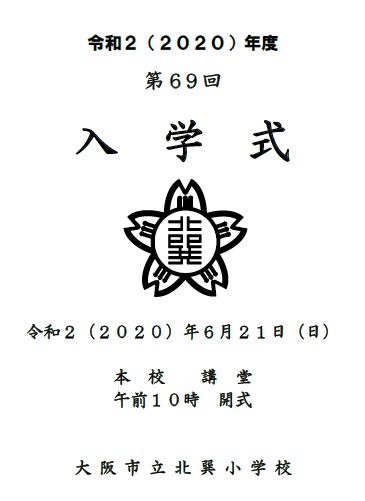 以前にお手紙でお知らせしましたが、入学式を下記のように実施いたします。