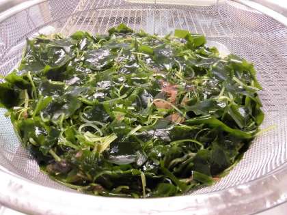 「ミックス海そうのサラダ」は、ミックス海そうとキャベツ、きゅうりを合わせ、砂糖、塩、米酢、うすくちしょうゆ、綿実油で作ったドレッシングであえます。
