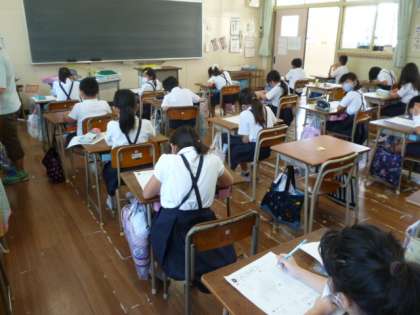 5年生 世界と日本の違いについてのテストをそしています。