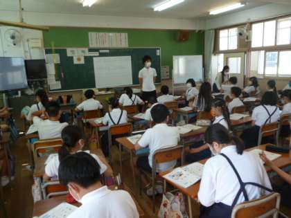 自分の得意なことを「good at」を使って、お互い紹介しています。
