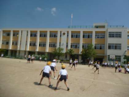 ドッジボールをしたり、竹馬や一輪車をしたり、多くの子どもたちの元気な姿がありました。みんなで協力して、楽しく活動していきましょうね。