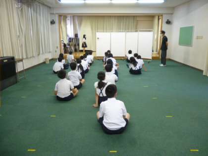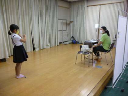 今日は5年生が視力検査です。待機の人もしっかり距離をとって、静かに待つことができています。