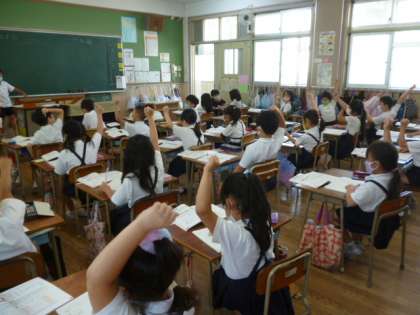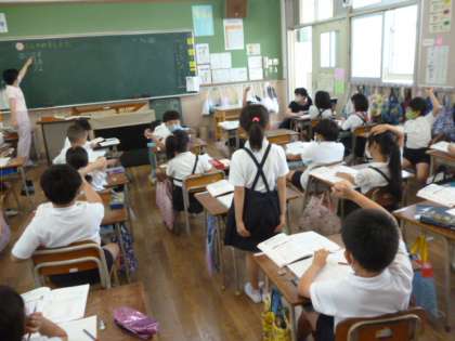 ひっ算で引き算をした後のたしかめ算について学習しています。積極的に手をあげて発言をしていました。