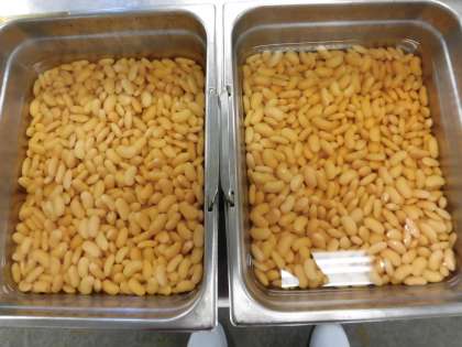 「大福豆の煮もの」の大福豆は、北海道産です。薄味ですが、お替りする子も何人かいましたょ。