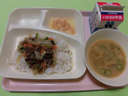 ★牛丼・とうがんのみそ汁・大福豆の煮もの・牛乳