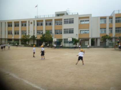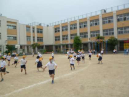 雨の合間に、運動場で元気に遊んでいます。