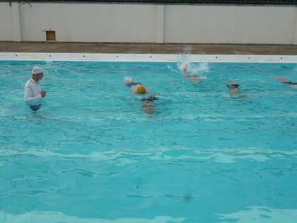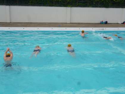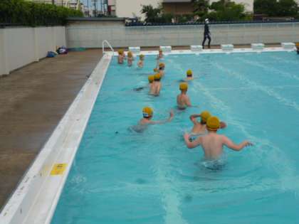 願いが通じ、今年度初めての水泳の授業です。けのびやバタ足の練習をした後に、現時点でどれだけ泳げるかを確認しました。